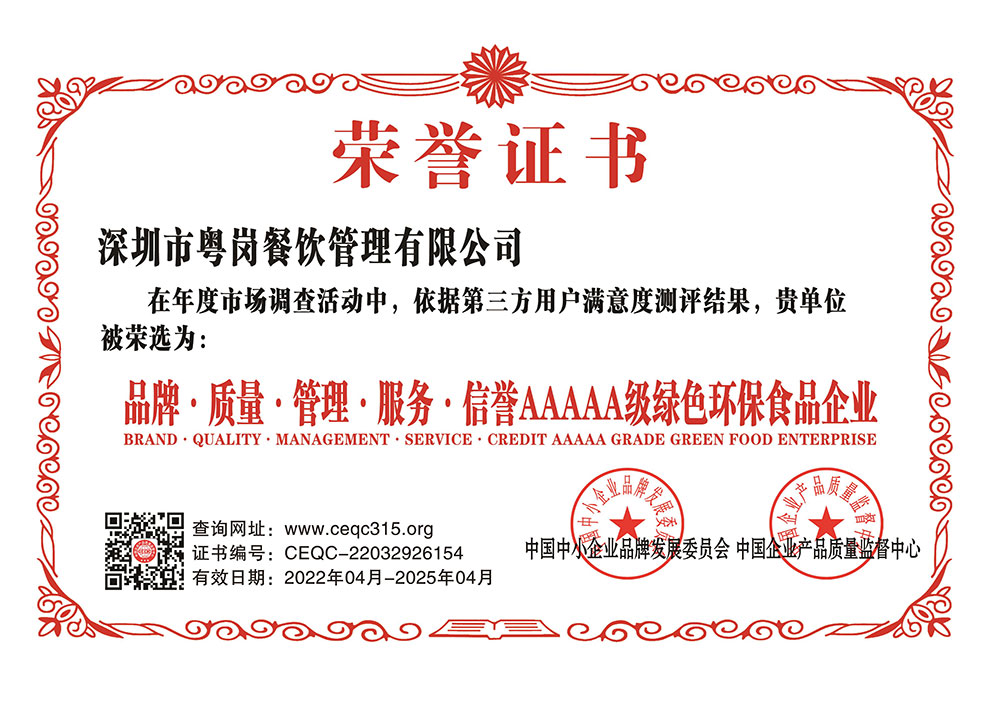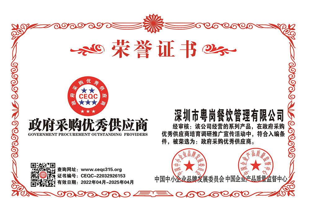 深圳市粵崗餐飲管理有限公司,是一家集蔬菜種植和農(nóng)副產(chǎn)品配送為一體的專業(yè)型餐飲公司,主要為學(xué)校、工廠企事業(yè)機關(guān)單位提供蔬菜和農(nóng)副產(chǎn)品配送服務(wù)。公司自成立以來始終以質(zhì)優(yōu)價廉、服務(wù)至上為原則,嚴(yán)格按照ISO:9001國際標(biāo)準(zhǔn)體系進行管理。同時建立了行業(yè)領(lǐng)先的配送中心、大型冷庫和保鮮庫、檢測中心以及專業(yè)化的配送團隊,能長期安全、穩(wěn)定、準(zhǔn)時的配送貨物。我們所有蔬菜均經(jīng)過初步加工、無黃葉,無泥沙等雜質(zhì),利用率達97%以上...保障向用戶提供的各類食材的衛(wèi)生和質(zhì)量。公司為了適應(yīng)不同客戶的需求,配有專業(yè)人員和配送車輛,實行“一對一”的服務(wù)體制,一心一意的為客戶服務(wù),秉承粵崗誠實守信、服務(wù)第一、客戶至上的服務(wù)標(biāo)準(zhǔn),真正讓客戶花最少的錢吃最好的菜。粵崗多年來何以欣欣向榮,因為我們知道只有勇于擔(dān)當(dāng)責(zé)任,才能承擔(dān)更大的責(zé)任,就是因為 粵崗員工貫徹公司態(tài)度決定一切、細(xì)節(jié)決定成敗的真理,從質(zhì)量抓起,從服務(wù)做起,才創(chuàng)造了如今的規(guī)模化供應(yīng)、統(tǒng)一性配送、專業(yè)化服務(wù)的粵崗。